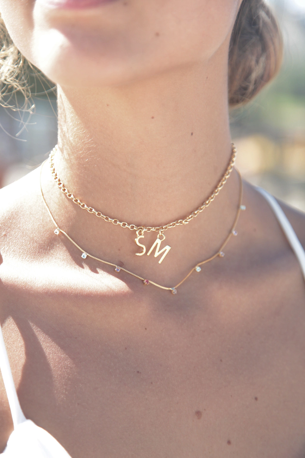 Choker de corrente com as iniciais do seu nome penduradinhas, regulável e personalizada! São até duas letrinhas! A foto é ilustrativa, temos todas as letras e não precisa ser necessariamente duas apenas, também há possibilidade para quem preferir uma letra.