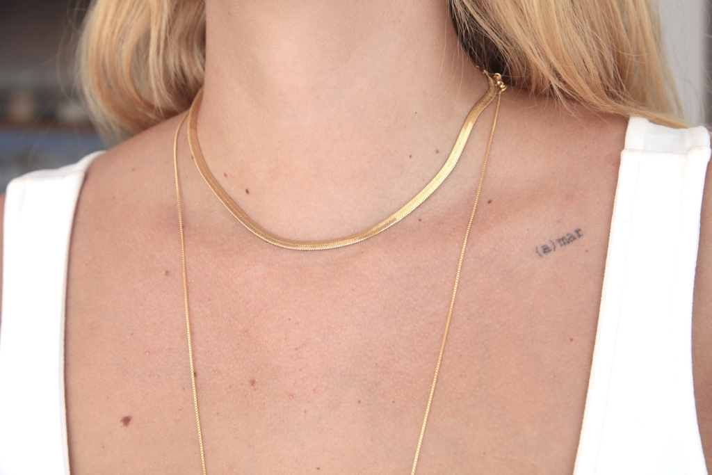 Choker estilo fita, achatada e maleável. Um acessório atemporal e chic.