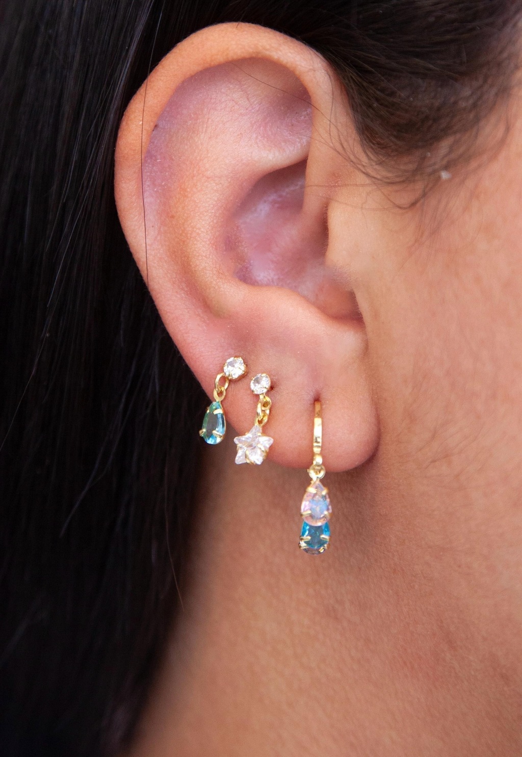 Brinquinho com pingente azul e ponto de luz em zircônia charmoso, minimalista e sofisticado. Um must have no porta jóias e ótimo para compor mixes na orelha.