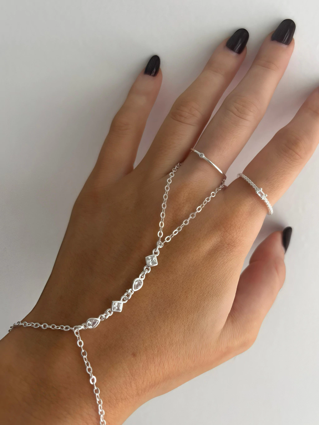 MIX PRONTO Anéis Zircônias, Fininho e Handchain Brilhantes