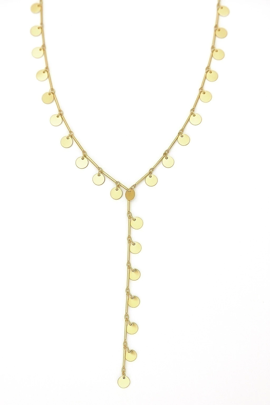 Colar estilo gravata prata com pingentes de moedas iluminadas que "piscam" com a luz solar. Combina com absolutamente tudo, é charmoso, estiloso e atemporal, ótimo para montar mixes.