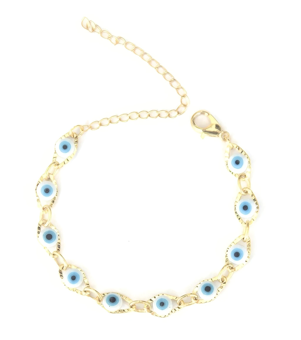 A pulseira Elos Olho Grego carrega proteção e elegância. Símbolo poderoso tira o mau olhado e má sorte não terão vez em seu caminho. Versátil para ser usado em diversas ocasiões, podendo produzir mix de pulseiras da coleção.