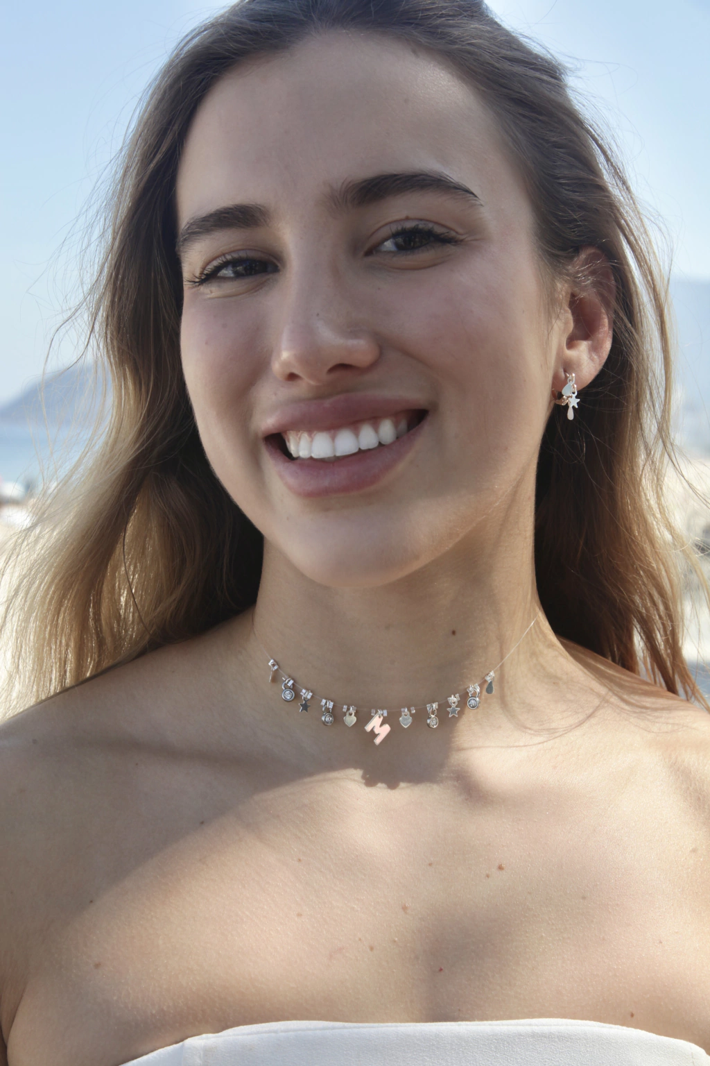 E como vai funcionar? Você pode montar a sua argolinha com 5 opções de pingentes: estrelinha, gotinha, coração, strass e letra (temos todas as letras).