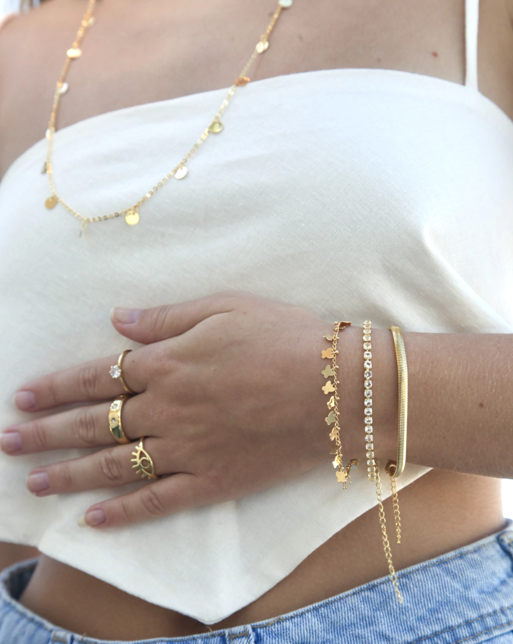 Pulseira toda revestida em borboletas, super iluminada e ótima para montar mixes com outra pulseiras e anéis.