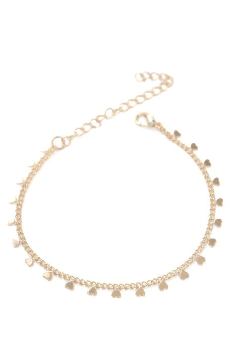 Pulseira corrente com mini corações presos, fofa e atemporal.